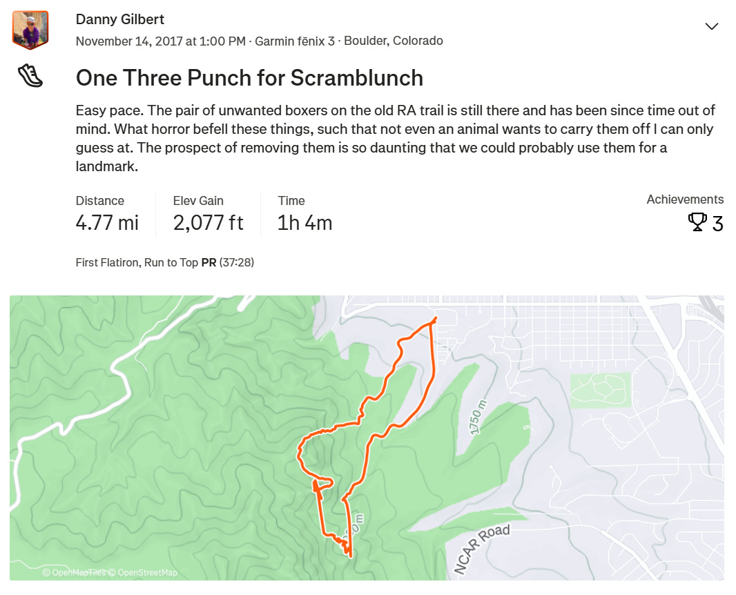 I have several partially written pieces, but as we all know: close only counts in horseshoes and hand grenades. Instead, please enjoy a few highlights from 2017, which was the first year I had Strava. Strava, for those that don’t know is a place where you can ostensibly track your workout activities, but end up tracking a much bigger slice of your life.